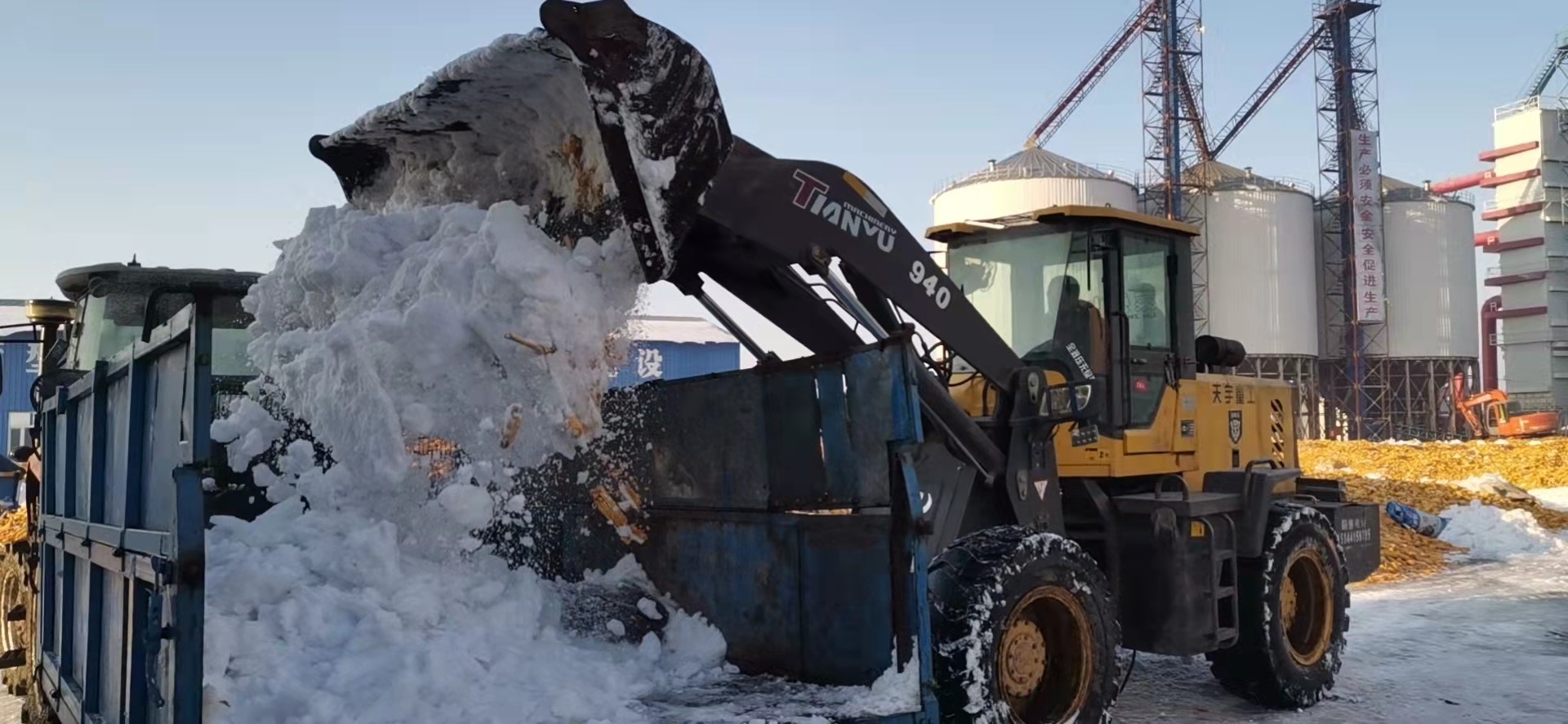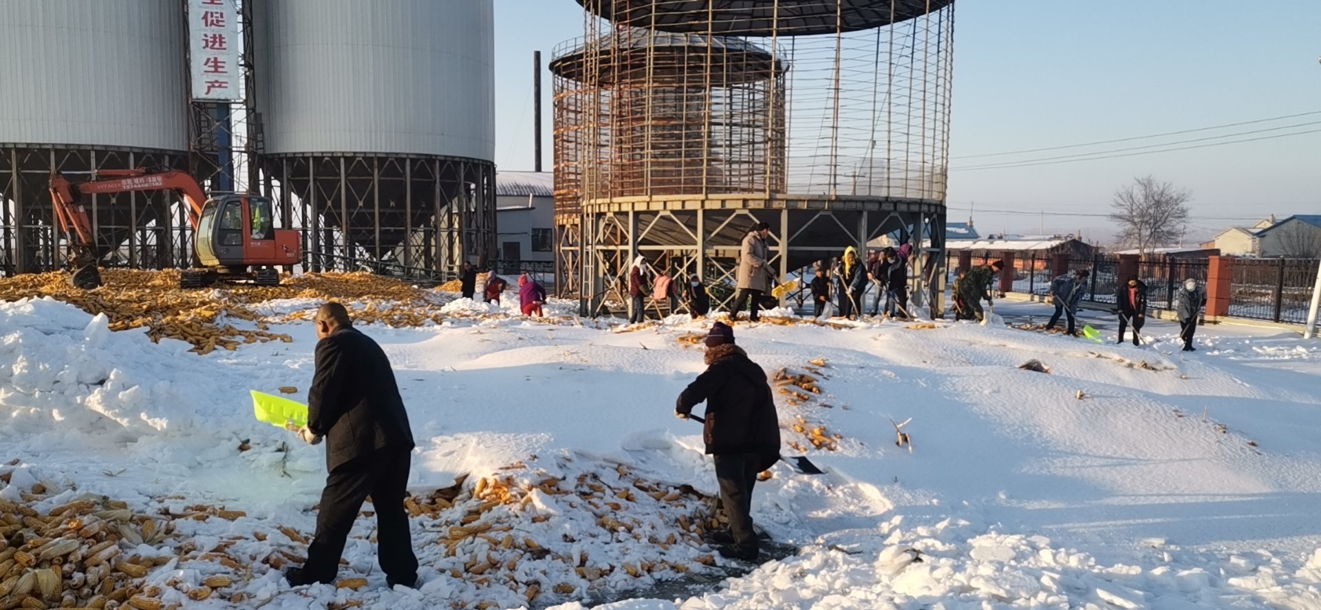 11月中上旬,东北地区普降大雪,积雪融化后很容易导致粮食霉变甚至出现坏粮现象。面对恶劣天气和天寒地冻,中农吉星积极帮助农户开展清理积雪工作,对粮堆较大,积雪较多的地方,公司用铲车、勾机来清理,做到急农户所急,避免农户遭受损失。