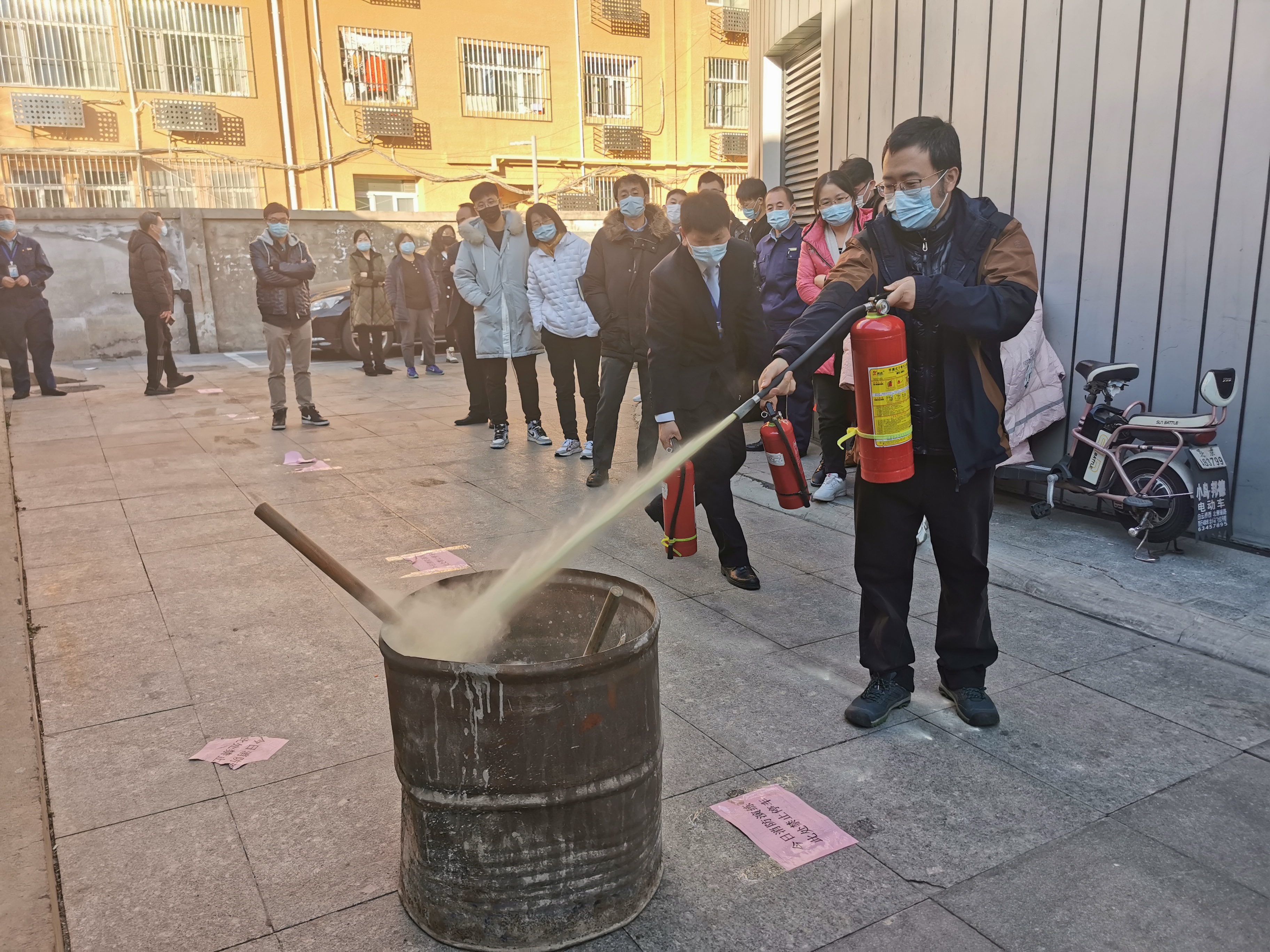 此次培训还进行了消防演练,相关人员演示了消防栓的构造和灭火方法,强调了灭火器 “一提二拔三对准四压” 的使用口诀,要距火场适当距离,站在上风位置对准火焰根部或燃烧最猛烈处进行灭火。参加培训人员按照灭火方法和步骤,拔掉灭火器安全栓,一手拿捏着压把,一手提着灭火器喷嘴,对着模拟起火点均匀喷洒,亲身体验了使用灭火器灭火的感受。