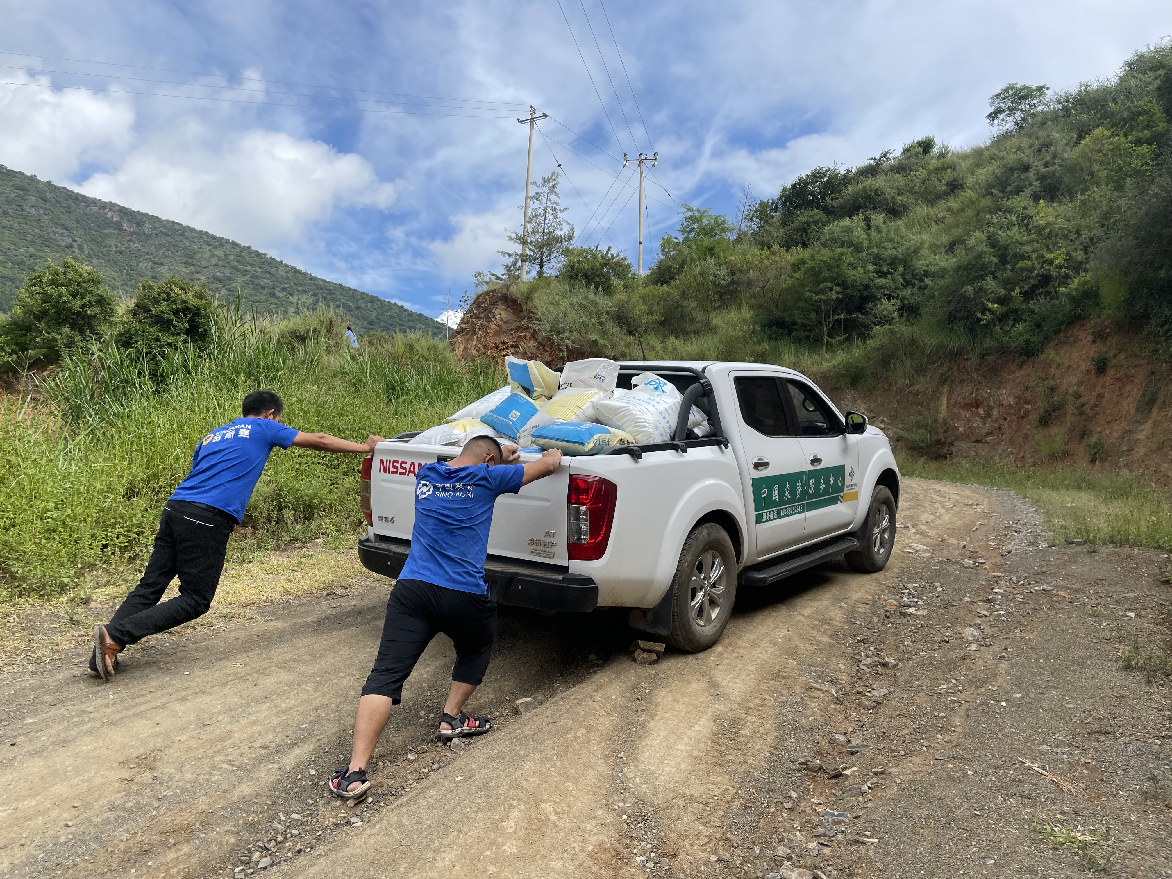 云南大理春和景明,欣欣向荣。中农控股四川公司云南区域农服人员翻山越岭为宾川县瓦溪村农户送肥料,农服人员推车经过陡坡后,还要扛着肥料走过一段泥泞小路,才能送达农户果园。肥料送到后,他们一刻不停歇,立即手把手传授科学施肥技巧。
