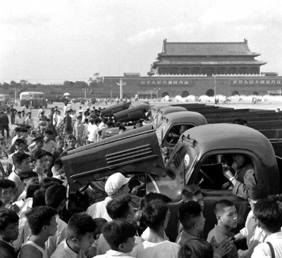 1956年,群众在天安门广场参观第一批“解放”牌汽车。资料图片