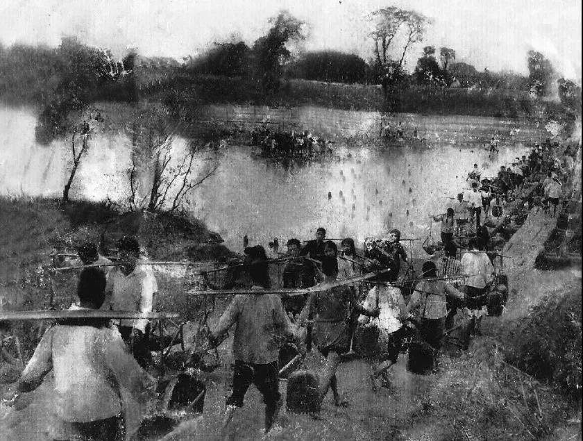 江西兴国县上社供销合作社社员义务帮助修筑排水渠。