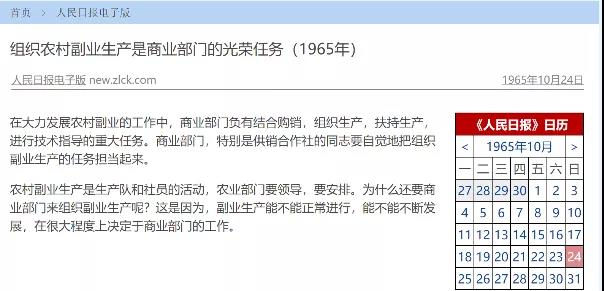 同年6月6日,《大公报》又发表了《组织副业生产是供销合作社的一项重要任务》的社论,指出:发展农村副业生产,不仅是农业生产本身所需要,也是工业生产、基本建设、城市供应和出口贸易所需要。从山西寨塔供销合作社支持生产队由穷变富和河北董里集供销合作社支持邢家庄大队战胜灾荒的报道看,只有坚持“以农为主,以副养农,综合经营”的方针,农业生产才能不断发展。