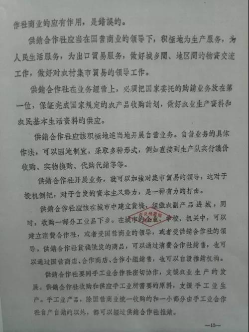 《指示》指出,供销合作社在农副产品收购方面的主要工作,是完成国家交给它的农副产品统购任务和派购任务。但是,除了统购和派购的农副产品以外,在农村中还有相当数量的三类物资和完成派购任务以后剩余的二类物资,供销合作社应当把这些物资收购起来,运到城市销售,这是供销合作社的一项重要任务。