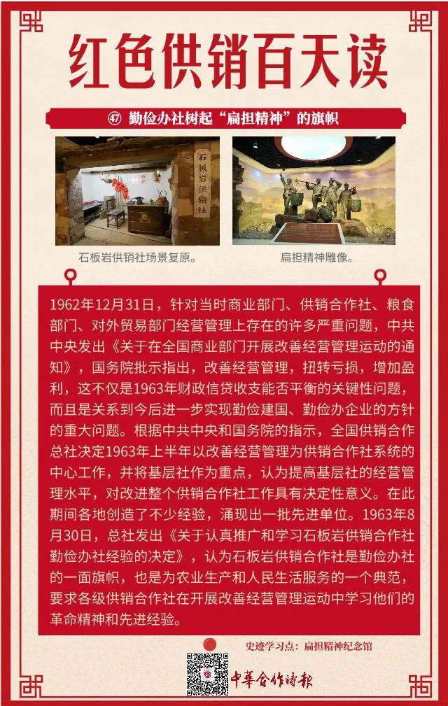 供销合作社人以春风化雨般的贴心服务、无私奉献,走进了千家万户,走进了老百姓的心里。“扁担精神”也正是在这样的服务中孕育成长,从石板岩这个小山村走向了全中国。