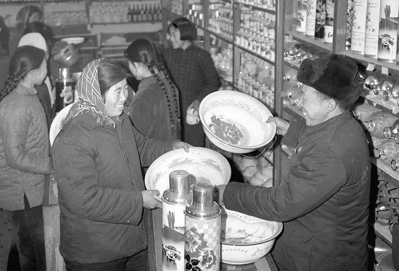 1971年12月10日,北京郊区卢沟桥人民公社社员在供销合作社选购日用品。