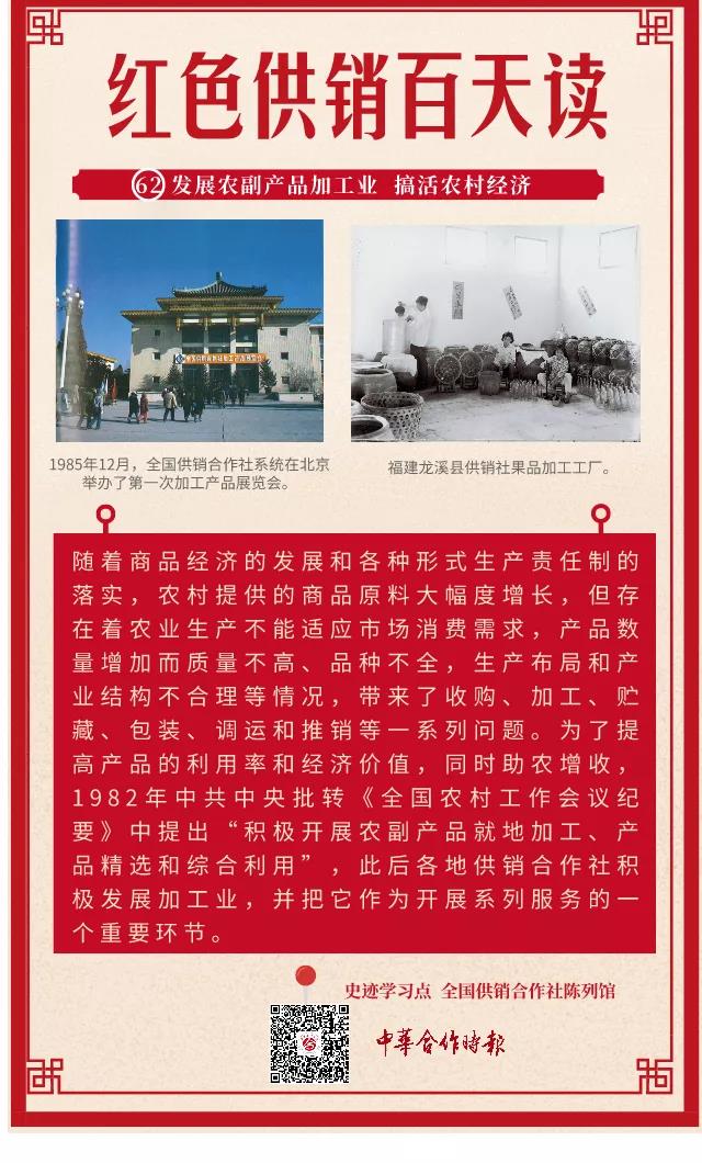 为了推动农副产品加工业的发展,扩大供销合作社的影响,推动社办工业的发展,1985年12月17日,在北京举办了全国供销合作社系统加工产品展览会。