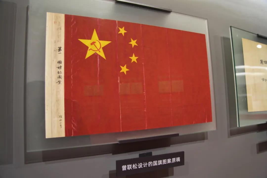 8月中旬,曾联松将图案画稿投递给新政协筹备会。不久,他被组织上安排到华东供销合作社事业管理局工作。工作伊始,庶事草创,整天忙于事务,投稿一事便不放心上了。直到五星红旗先后在天安门及全国各地升起,报纸上刊出五星红旗图案,他心里既激动又惊诧:“怎么和我的图案差不多?”他设计的国旗,大五角星里面有斧头和镰刀图案,差别也就只此一处。