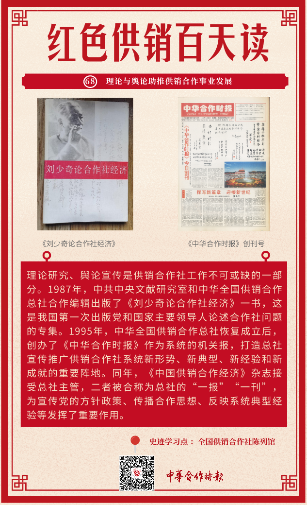 1987年,中共中央文献研究室和中华全国供销合作总社合作编辑出版了《刘少奇论合作社经济》一书,收录了刘少奇同志1948-1957年有关合作社的文章、报告、讲话、电文、批示、书信等重要著作30篇。出版党和国家一位主要领导人论述合作社问题的专集,在我国还是第一次。