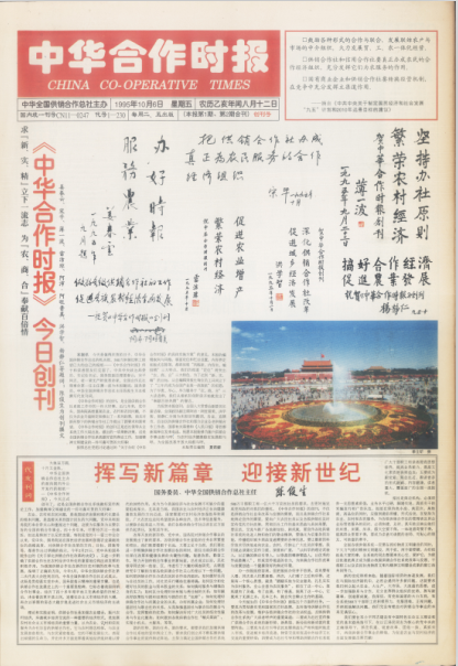 1995年10月6日,中华全国供销合作总社创办了《中华合作时报》,作为总社机关报。国务委员、全国供销合作总社理事会主任陈俊生在《发刊词》中指出:《中华合作时报》的任务,主要是贯彻落实党和国家的方针、政策,及时指导供销合作社系统的改革和发展,维护各级供销合作社的合法权益,反映供销合作社系统广大读者呼声;要成为引导农民发展商品生产和有组织地进入市场,促进城乡经济交流和中外文化交流的重要桥梁;要成为总社宣传推广供销合作社系统的新形势、新典型、新经验和新成就的重要阵地。